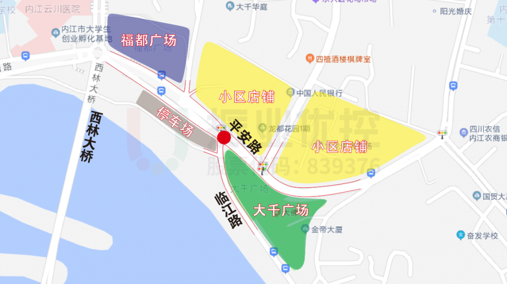 平安路與臨江路路口位于內江市東興區(qū)西林大橋東北側,由東西走向的平安路(西進出口雙向8車道,東進出口雙向5車道)與南北走向的臨江路(雙向2車道)交叉組成,周邊分布有大千廣場、福都廣場、居民小區(qū)、酒店、商場等,是機動車、非機動車及行人過街主要匯聚點。