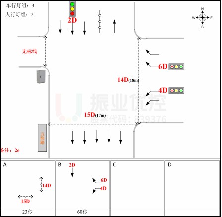 為避免機動車空放及行人過街等待時間過長,對開發(fā)銀行路口采用倍周期方案設計。