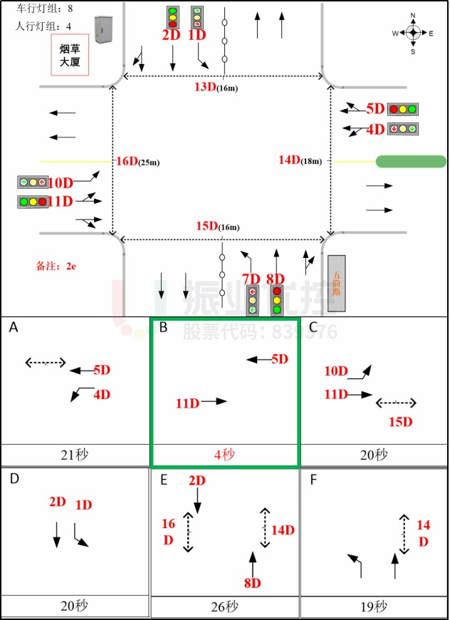 為搭接多相位協(xié)調進行調試,調試過程中發(fā)現(xiàn)煙草大廈路口東進口左轉機動車與南進口行人存在沖突;以及因為東進口左轉通過路口距離過長,導致東進口左轉尾車與行人產生沖突。