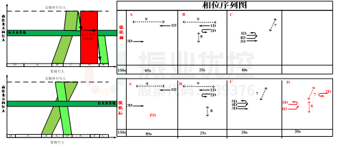 本次優(yōu)化主要是解決東進(jìn)口北往南行人過街不連續(xù),導(dǎo)致等待時(shí)間長(zhǎng)的問題。交通工程師根據(jù)現(xiàn)場(chǎng)采集到的路口信息,在保證原有路口機(jī)動(dòng)車通行效率不下降的情況下,設(shè)置行人過街雙向協(xié)調(diào)的控制方式。