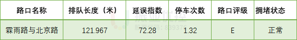 北京路-霖雨路位于北京路沿線的北段,是連接北市區(qū)至主城區(qū)的重要交通樞紐,由于北市區(qū)主要分布住宅和學(xué)校,早晚高峰時(shí)段進(jìn)城/出城通勤量較大,高峰平均排隊(duì)長(zhǎng)度達(dá)121米,延誤指數(shù)高達(dá)72,使得該路口成為北市區(qū)的一大“堵點(diǎn)”。