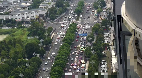 北京路-人民路是主城區(qū)“三橫四縱”主干道的交會(huì)節(jié)點(diǎn)之一,周?chē)植贾≌瑓^(qū)、學(xué)校、公園、酒店、綜合商業(yè)區(qū)等流量吸引場(chǎng)所,疊加高峰時(shí)段上下班通勤車(chē)流造成的潮汐現(xiàn)象(早高峰進(jìn)城車(chē)輛較多,晚高峰相反),使得該路口全天各時(shí)段都承載著較大的交通壓力,早晚高峰時(shí)段平均排隊(duì)長(zhǎng)度達(dá)165米,延誤指數(shù)高達(dá)71。