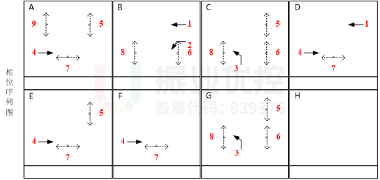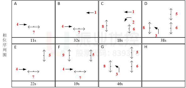 (3)E-F相位:有效解決西直行排隊長相互阻擋、車流離散的問題。如下圖所示: