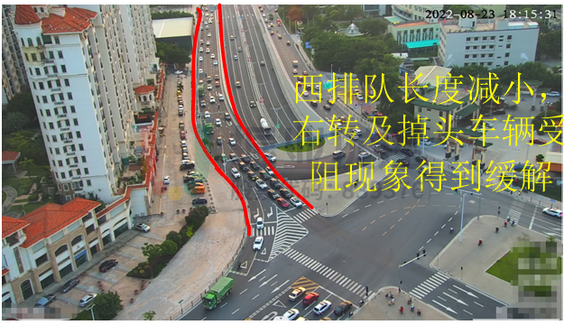 3.西直行排隊車輛阻擋右轉(zhuǎn)、掉頭車輛通行