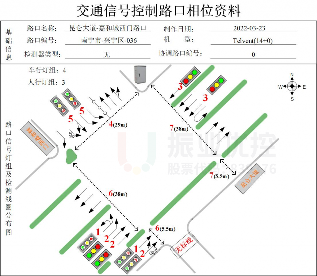 根據(jù)問題癥結(jié),從路口基礎設施改造和優(yōu)化信號配時方案出發(fā),打通西門路口擁堵;再對路段車輛的通行特性進行合理分析,設計出綠波協(xié)調(diào)方案,進而提升路段通行效率。