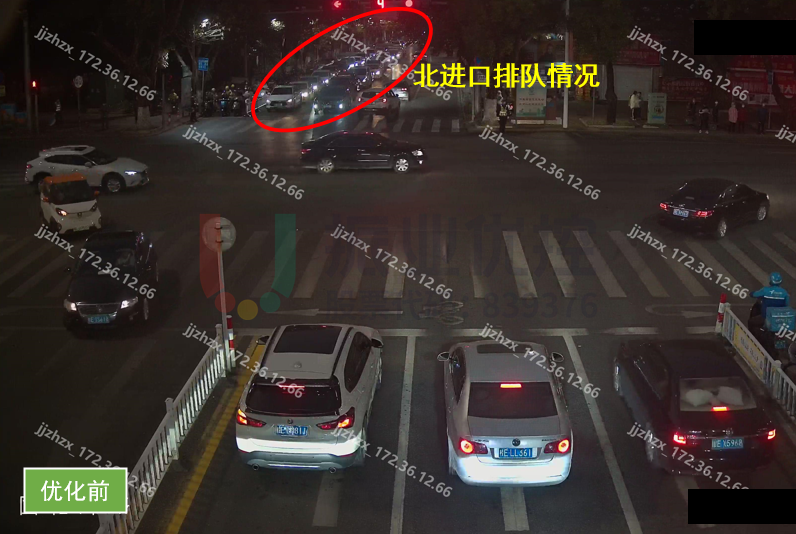 優(yōu)化效果:北往南直行車輛排隊情況、左轉(zhuǎn)空放情況得到緩解,通行情況明顯改善。