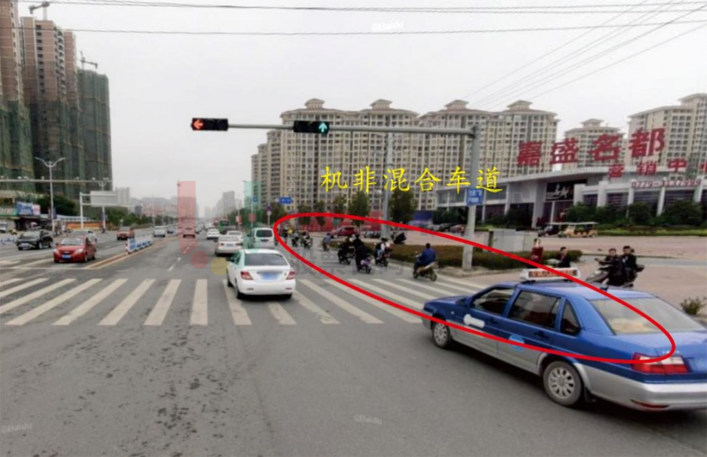問題簡述:南北方向右轉(zhuǎn)機動車通行需求大,在非機動車較多時,由于非機動車道寬度較窄,路口排隊空間容易飽和,造成右轉(zhuǎn)機動車無法通行;高峰時段南出口左轉(zhuǎn)機動車通行需求大,由于只有一條左轉(zhuǎn)專用車道,部分車輛出現(xiàn)二次排隊的現(xiàn)象。