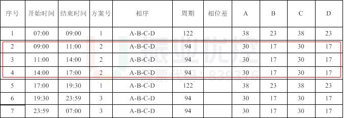 其中,長城路-耀目路交叉口原信號機配時方案平峰周期為94秒;長城路-學府路交叉口原信號機方案劃分了7個時段,且每個時段周期都不一樣,早平峰周期為58秒,午平峰為54秒。兩個路口早平峰周期相差36秒,午平峰周期相差40秒,周期相差較大。