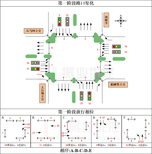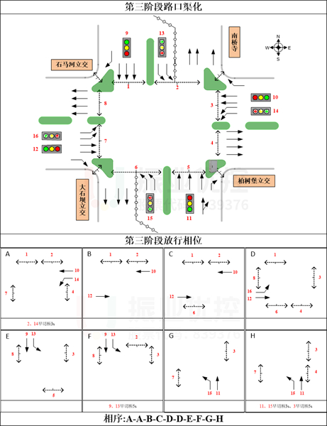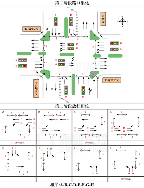 關(guān)鍵詞:立交改造、施工時(shí)序、精細(xì)化信控保障、 左轉(zhuǎn)改掉頭、前置待行區(qū)、疏堵保障