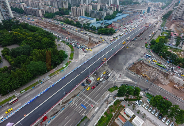 隨著城市的快速發(fā)展、交通骨架路網(wǎng)的擴(kuò)張、交通提質(zhì)增效工作的推進(jìn),較多超飽和流量平交路口需要結(jié)合實(shí)際通行量進(jìn)行立交化改造,改造期間因地理位置突出、交通轉(zhuǎn)換節(jié)點(diǎn)、施工時(shí)序多變等因素,對(duì)輻射區(qū)域的交通影響較大,引發(fā)一系列交通“陣疼”。