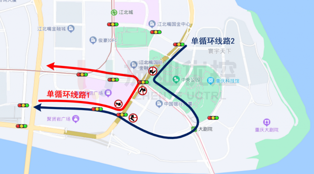 區(qū)域內(nèi)停車位緊張或流量接近飽和時(shí),啟動(dòng)微循環(huán)交通組織方式,禁止車流進(jìn)入千廝門大橋等區(qū)域,在北濱一路節(jié)點(diǎn)路口進(jìn)行臨時(shí)管控,通過渝魯大道快速疏散,緩解內(nèi)部車流壓力。