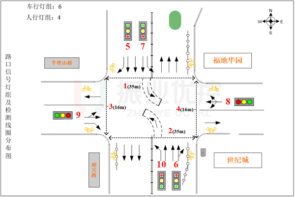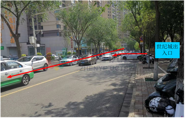 距離路口東口50m處有住宅區(qū)世紀城及福地華園的兩處停車場出入口,高峰時期進出停車場的車流對東進口通行影響較大,嚴重時車流回溢到路口,影響路口正常通行。