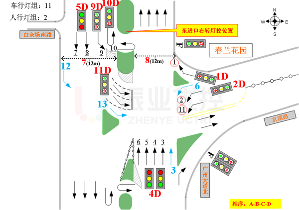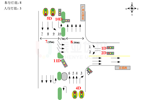 廣州大道為廣州市區(qū)重要主干道,車流量較大;京溪路為東西向次干道,雙向4車道;加之交叉口附近有居民小區(qū)、旅游景點(diǎn)、醫(yī)院等重要人流聚集地,日常交通壓力大。