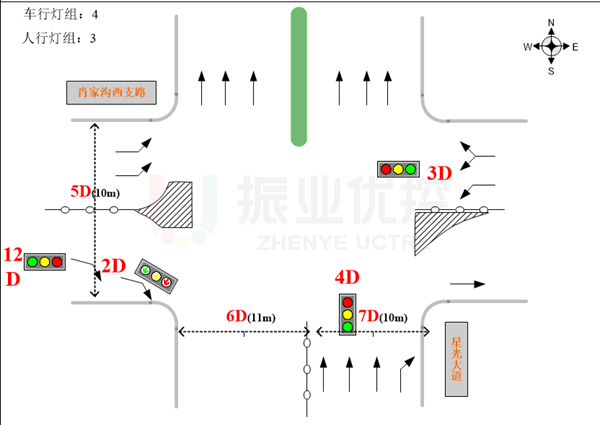 (1)設(shè)置南往北潮汐車道,緩解南進(jìn)出口(星光大道)高峰期間潮汐現(xiàn)象,提高道路使用效率;