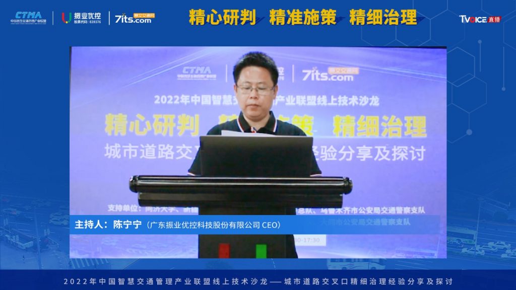 2022年7月15日,由公安部交通管理科學研究所(以下簡稱“交科所”)指導,中國智慧交通管理產(chǎn)業(yè)聯(lián)盟(以下簡稱“產(chǎn)業(yè)聯(lián)盟”)主辦,產(chǎn)業(yè)聯(lián)盟交通規(guī)劃與設計組組長單位廣東振業(yè)優(yōu)控科技股份有限公司(以下簡稱“振業(yè)優(yōu)控”)承辦,主題為“精心研判 精準施策 精細治理”的城市道路交叉口精細治理經(jīng)驗分享及探討線上技術沙龍在賽文直播平臺成功舉辦。