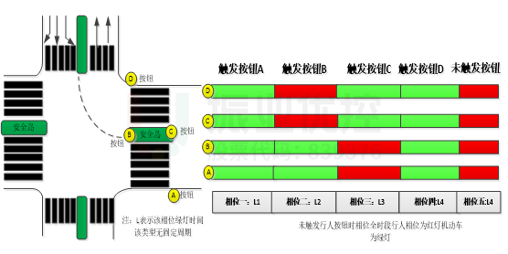 優(yōu)點(diǎn):雙向行人協(xié)調(diào)控制,能夠充分利用行人綠燈時(shí)間;