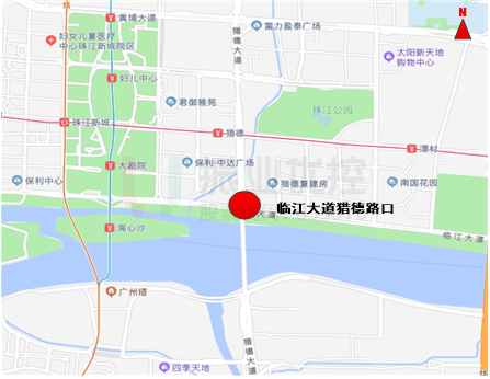 臨江大道-獵德大道路口位于天河區(qū),為十字形路口。臨江大道為東西走向主干道,東接華南大橋,西接廣州大橋。該路口高峰時(shí)段東西方向?yàn)橹饕飨颍嚵髁看?、車輛排隊(duì)時(shí)間長(zhǎng),路段時(shí)有擁堵發(fā)生。