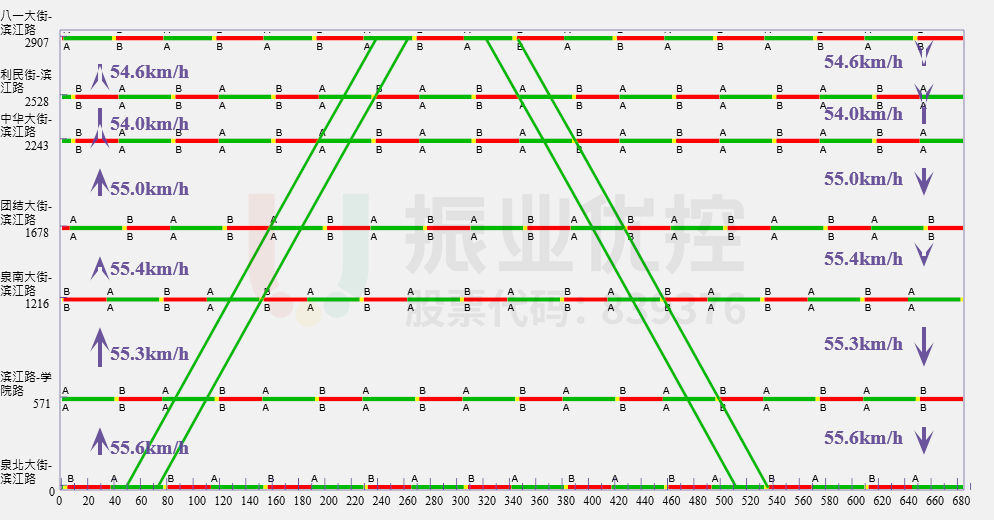 綠波設(shè)置條件:綠波的設(shè)置主要從三個(gè)方面考慮,第一是路網(wǎng)條件;第二是交通流條件;第三是信號(hào)控制條件。綠波一般在道路非飽和狀態(tài)下才能發(fā)揮最佳效果,因而平峰時(shí)段設(shè)置雙向綠波協(xié)調(diào)應(yīng)用的場(chǎng)景較多。