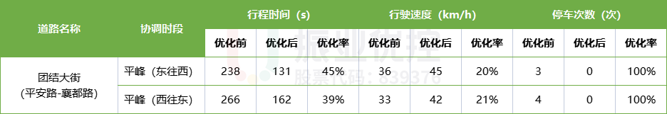本文案例中兩橫兩縱道路條件較好,通過綠波協(xié)調(diào)提升了路段的通行效率。該區(qū)域中的路網(wǎng)呈“口或田”的結(jié)構(gòu)特點(diǎn),下一步可以嘗試分時(shí)、分段區(qū)域協(xié)調(diào)控制策略,高峰外截內(nèi)疏和平峰區(qū)域交叉綠波協(xié)調(diào)等,提升該區(qū)域的整體通行效率。