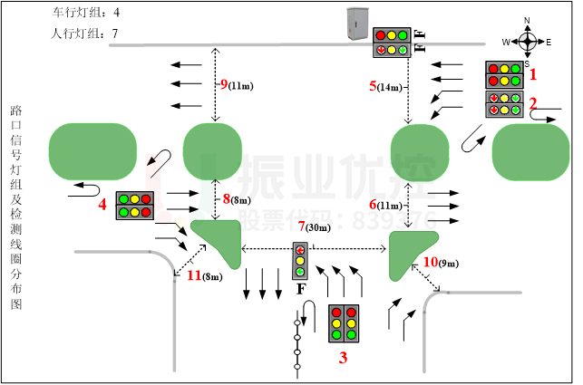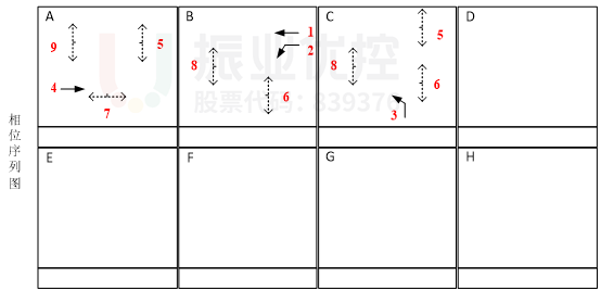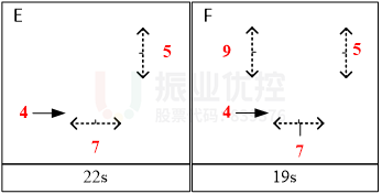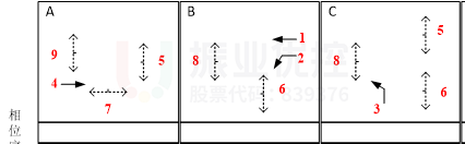 (3)E-F相位:有效解決西直行排隊長相互阻擋、車流離散的問題。如下圖所示: