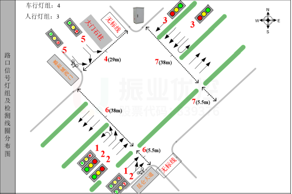 根據(jù)問題癥結(jié),從路口基礎設施改造和優(yōu)化信號配時方案出發(fā),打通西門路口擁堵;再對路段車輛的通行特性進行合理分析,設計出綠波協(xié)調(diào)方案,進而提升路段通行效率。