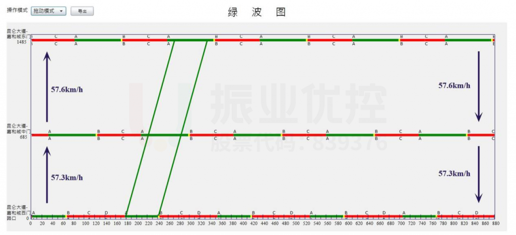 因該路段主要行車方向早高峰為東往西進城方向,其他時段為西往東出城方向,且路段無特殊管控需求,可根據(jù)市民出行需求設置綠波協(xié)調(diào)方案。