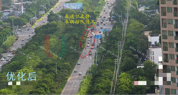 優(yōu)化效果:北往南直行車輛排隊情況、左轉(zhuǎn)空放情況得到緩解,通行情況明顯改善。