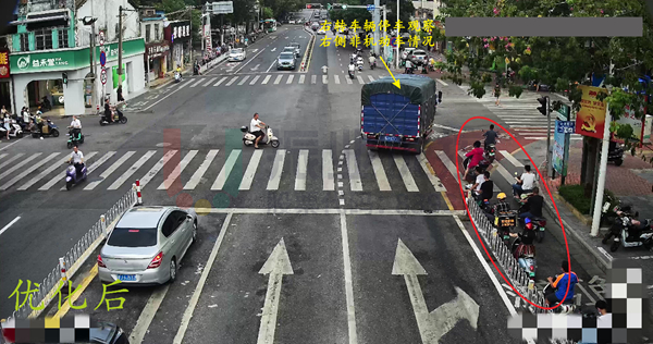 通過交通組織優(yōu)化,解決了右轉(zhuǎn)機動車與直行非機動車沖突的問題,提升路口整體通過效率。