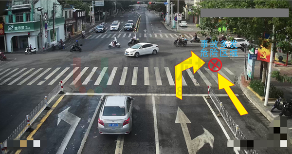 優(yōu)化效果:大型運輸車右轉(zhuǎn)時,無論有無機動車或行人通過,都必須停車瞭望,減少事故的發(fā)生;過往非機動車在臨近紅色警示區(qū)域時注意謹慎通行,起到事故預防的作用。