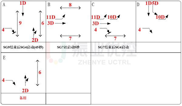 在北進(jìn)口直行左轉(zhuǎn)放行相位(D相)結(jié)束前10s,指引南進(jìn)口直行車輛進(jìn)入待行區(qū)。