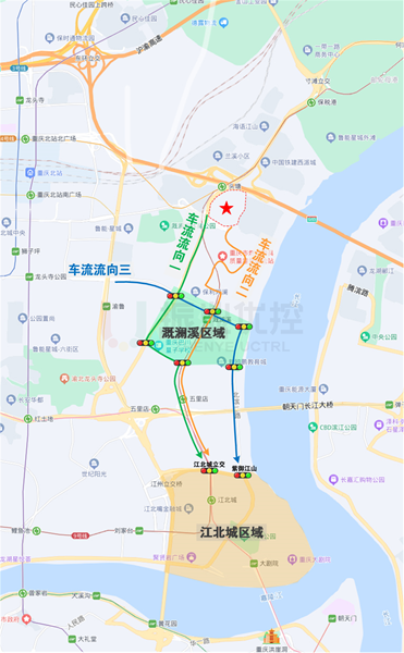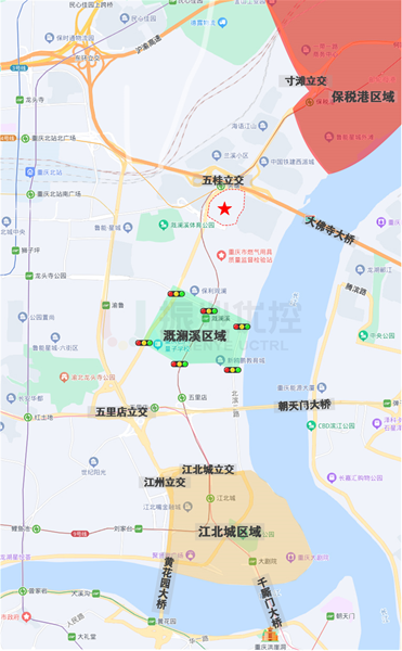 溉瀾溪片區(qū)位于重慶市江北區(qū)東部,北連寸灘港、保稅港,南接五里店、江北嘴。片區(qū)主要道路有鳳瀾路、江溉大道、天瀾大道,共6個(gè)信號(hào)控制路口,日常通行需求較大。