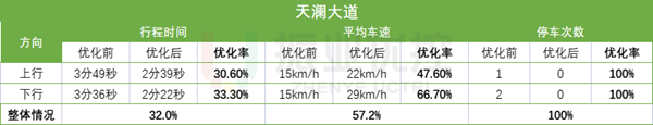 路段上行停車次數(shù)由1次變?yōu)?次,全程耗時(shí)縮短46秒;下行停車次數(shù)由1次變?yōu)?次,全程耗時(shí)縮短35秒。