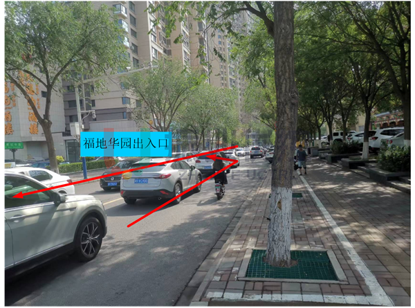 距離路口東口50m處有住宅區(qū)世紀城及福地華園的兩處停車場出入口,高峰時期進出停車場的車流對東進口通行影響較大,嚴重時車流回溢到路口,影響路口正常通行。