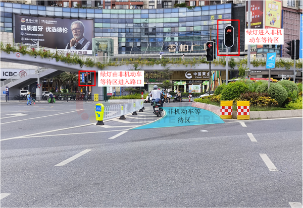 - 增設(shè)非機(jī)動(dòng)車燈、專用通道及待行區(qū)