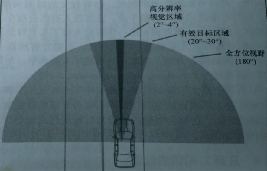 還有一個重要特點(diǎn)是有效視野。研究表明,大多數(shù)目標(biāo)是在距離視線不到15°的區(qū)域被發(fā)現(xiàn)的。任務(wù)要求越高,“視錐”或“有效視野”就越窄,駕駛?cè)税l(fā)現(xiàn)外圍目標(biāo)的可能性就越?。ㄈ鐖D2)。這也就是為什么在車速越高時視野越窄的原因。分心駕駛也與視覺處理能力有關(guān)。