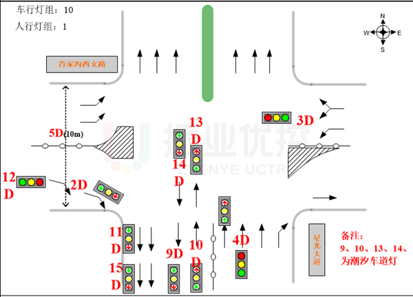 (1)設(shè)置南往北潮汐車道,緩解南進(jìn)出口(星光大道)高峰期間潮汐現(xiàn)象,提高道路使用效率;