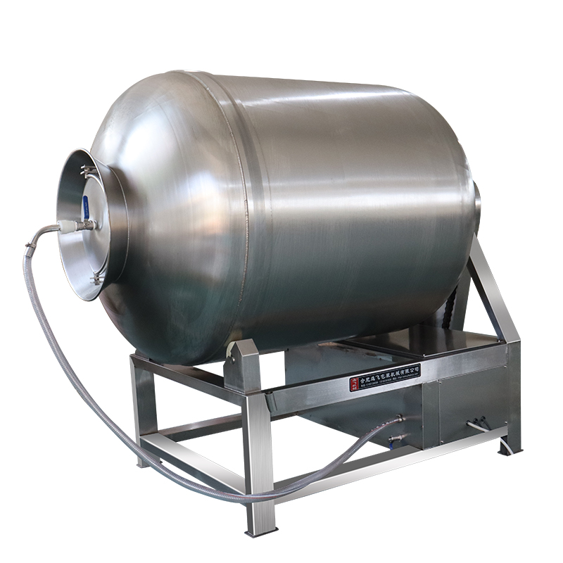 真空滾揉機筒體采用SUS304不銹鋼材質(zhì)制作,圓筒狀設計使?jié)L揉空間加大,運行噪音小,三片漿葉圓弧形設計,使腌料與原料肉分布均勻,避免了對原料肉表面的傷害。防水電腦版控制柜與時間繼電器控制結合,方便客戶根據(jù)自己的生產(chǎn)工藝要求調(diào)節(jié)滾揉時間、靜汁時間。整機外觀采用表面鏡面拋光處理,外觀整潔、大方。